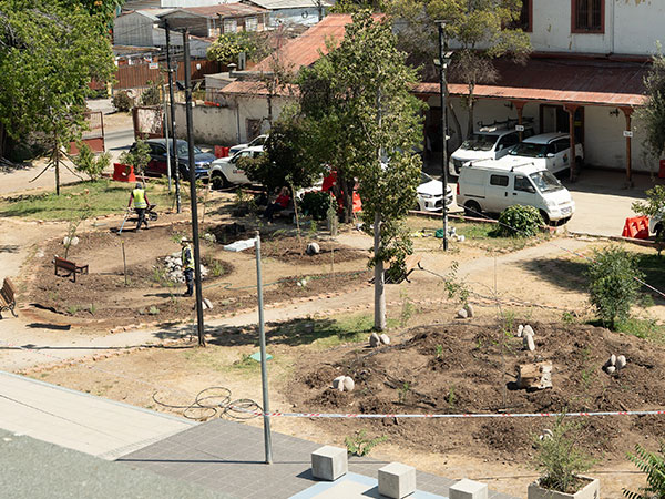 Desarrollada junto a Bupa Chile, la Municipalidad y Fundación Mi Parque, esta intervención de 270 m² recuperó el entorno de la Casa Patronal con nueva vegetación y un recambio de suelo que permite captar aguas lluvia, prevenir inundaciones y favorecer la infiltración hacia las napas subterráneas.
